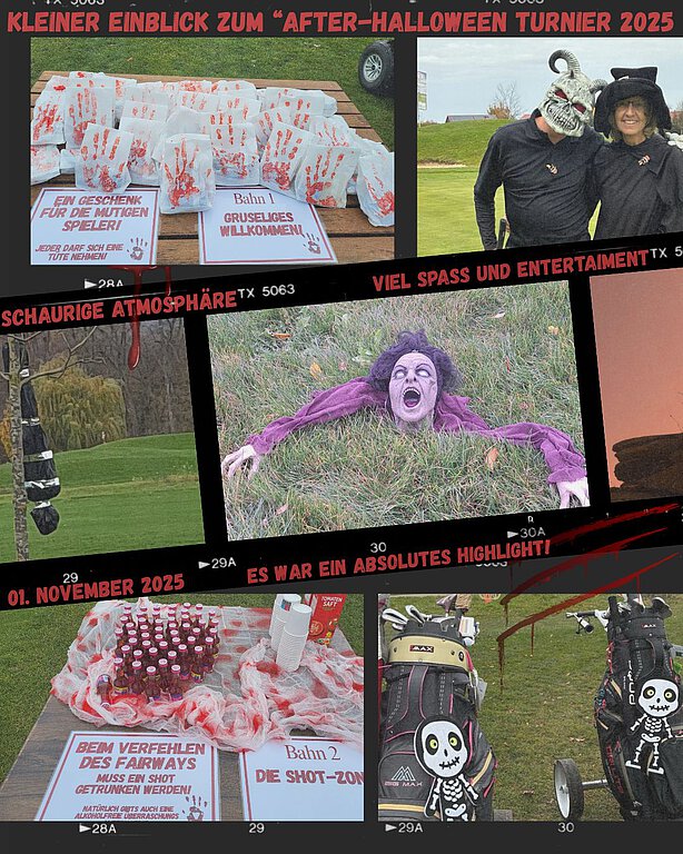 am Samstag, den 01.11.2025, einen Tag nach Halloween hat unser beliebtes After-Halloween-Turnier auf den Bahnen 1-15und 15-18 stattgefunden. 40 Teilnehmer haben sich den Spaß nicht nehme lassen und sind teils witzig-gruselig an den Start gegangen. Unser Küchenteam hat allen Teilnehmern ein schaurig-schönes Halloween-Buffet gezaubert.